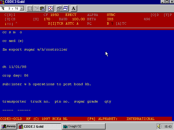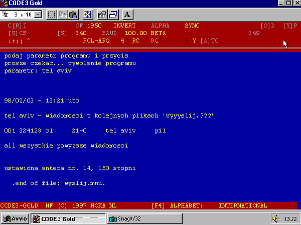 Sistema: ARQ 3242 a 2 canali, Velocità 200 Baud, Shift 379 Hz