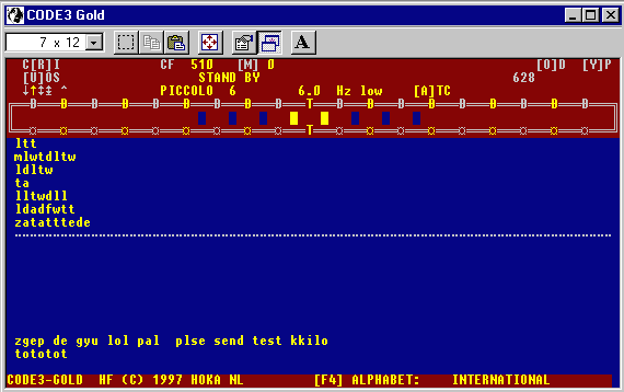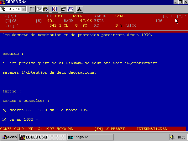 Sistema: Piccolo MK VI, Velocità 20 Baud, Shift 20 Hz, canale a 510 Hz