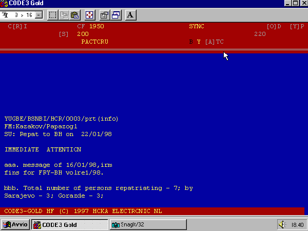 Sistema: Pactor U, Velocità 200 Baud, Shift 200 Hz