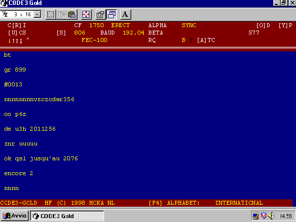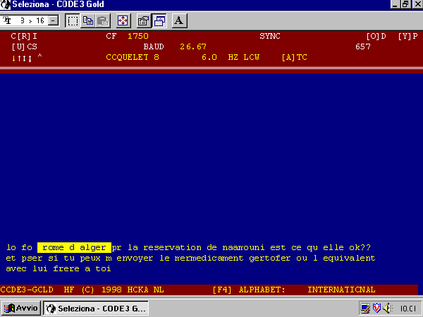 Sistema: Coquelet 8, Velocità 26.6 Baud, Shift 30 Hz