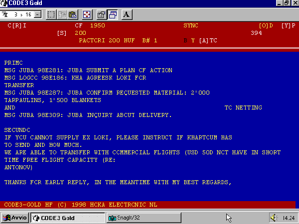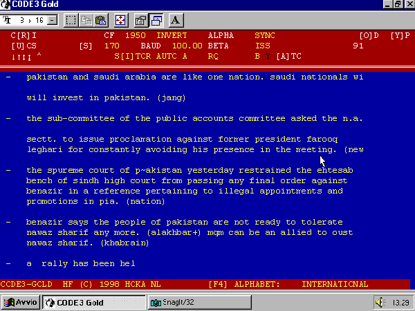 Sistema: Pactor I, Velocità 200 Baud, Shift 200 Hz