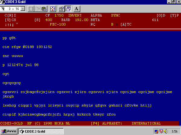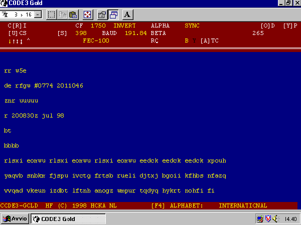 Sistema: FEC A, Velocità 192 Baud, Shift 398 Hz