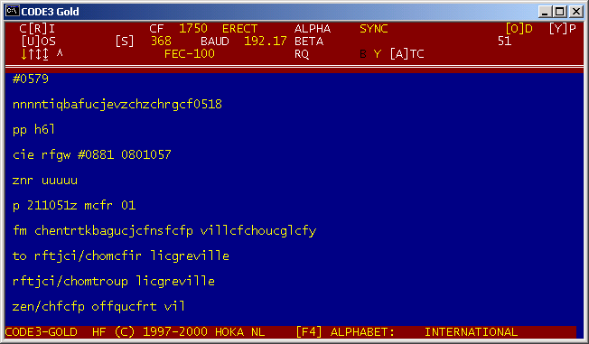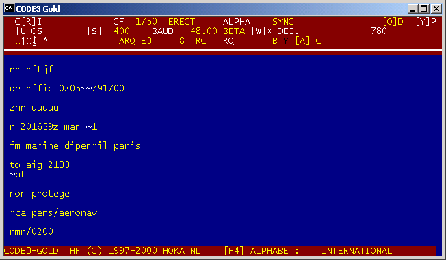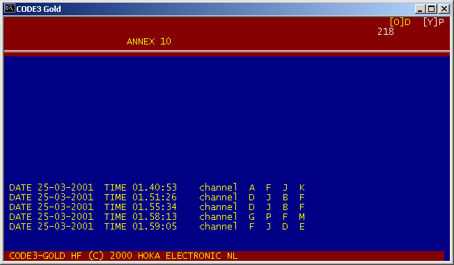 DATE 25-03-2001 TIME 00:40:53 SYSTEM ANNEX 10 FREQUENCY 8891.000 kHz decoder Code3 Gold, ricevuto da SMS