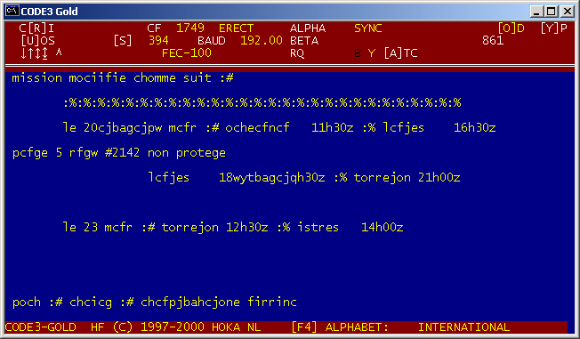 DATE 21-03-2001 TIME 18:24:00 SYSTEM FEC-100 ch 1 FREQUENCY 18308.500 kHz BAUDRATE 192.000 SHIFT 394 Hz decoder Code3 Gold, ricevuto da SMS Testo