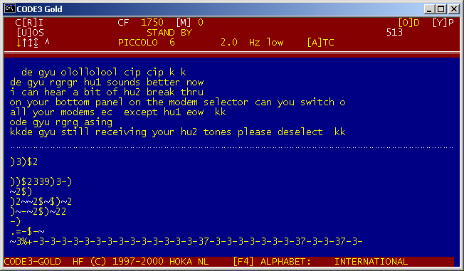 DATE 23-03-2001 TIME 14:36:11 SYSTEM PICCOLO ch 1 FREQUENCY 16163.500 kHz BAUDRATE 20.000 SHIFT 50 Hz Testo