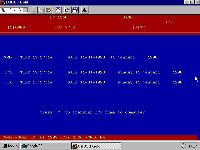 | DCF 77 (Time) DCF77 is the callsign of a German Time Signal on 77.5kHz. Using a drop in transmitter power of 6dB to denote a data bit, it provides for an accurate source of frequency and time. Unlike the British MSF signal on 60kHz, DCF77 never goes off air, thus offering a very reliable and always available standard source. ![]() |