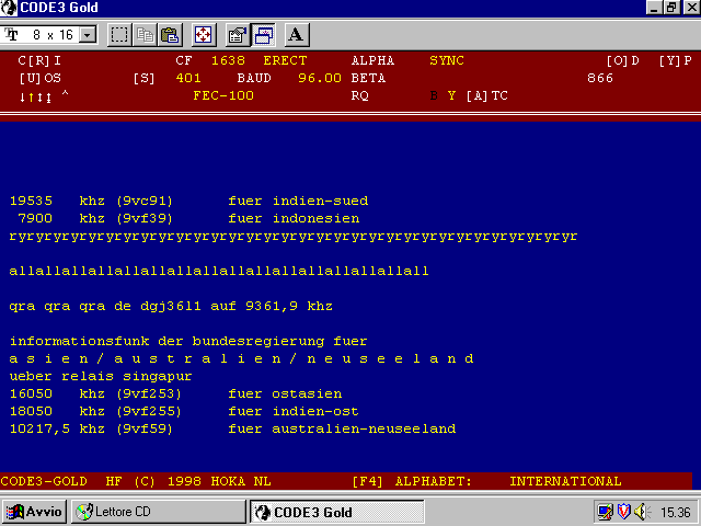 Velocità tipiche 96, 144, 192 baud, shift 400, 850 Hz.